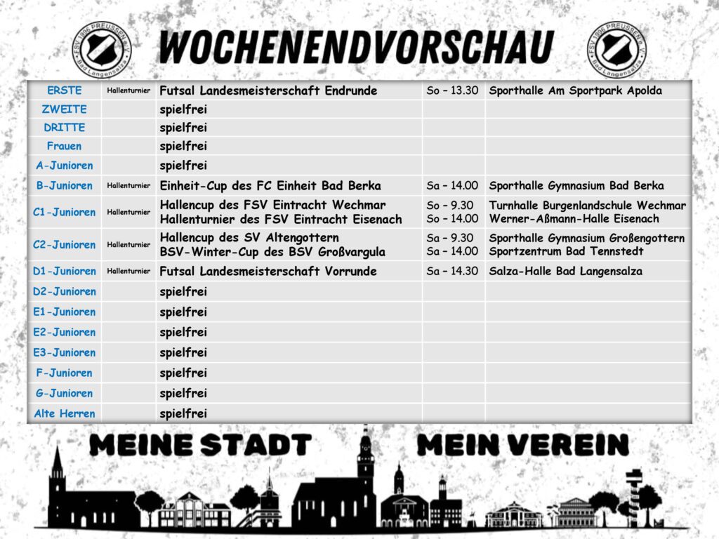 Unsere Thüringenliga-Mannschaft wird am Sonntag in Apolda versuchen, erstmals den Hallentitel des TFV zu holen. Das sieben andere Mannschaften das […]