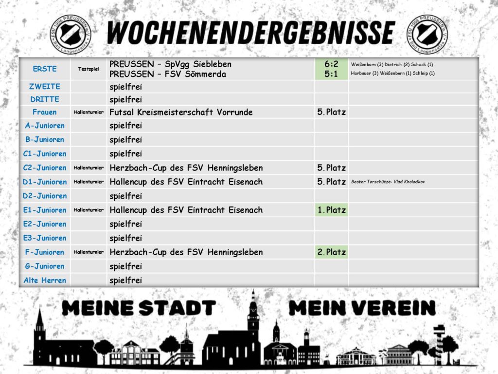 Heute Vormittag nahmen die F-Junioren des FSV Preußen am erstmals ausgetragenen Herzbach-Cup des FSV 90 Henningsleben teil. Die Oostkamp-Halle als […]